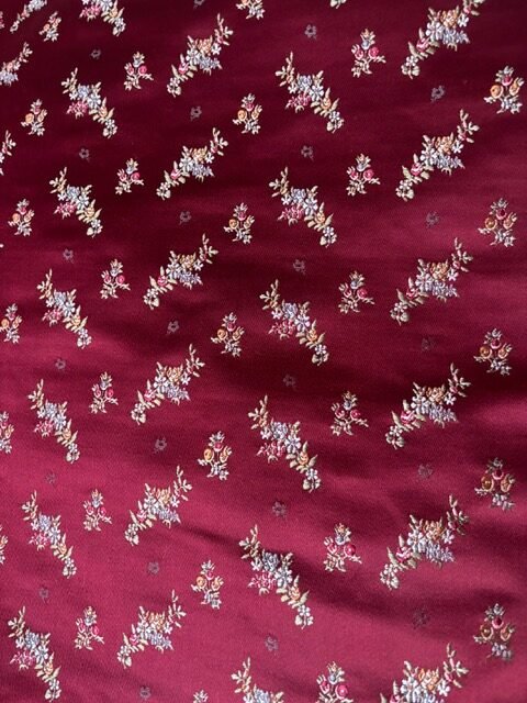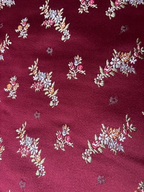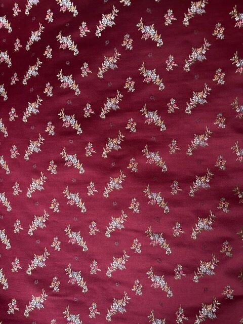 Tela doble ancho dibujo Carmesina de algodón. Color Budeos. Metraje total: 1.2m x 1.40m. Telar: Vives i Marí. Para chaleco, jubón o justillo.